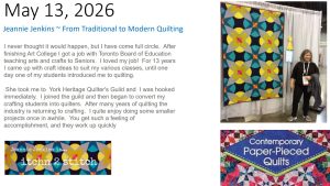 Thank you, Shirley Dawson, for your wonderful ‘The “F” Word In Quilting’ talk. Members enjoyed the twists and turns with your fun ‘F Words’ throughout your presentation. What a wonderful display of UFO’s that are now being enjoyed as finished projects.